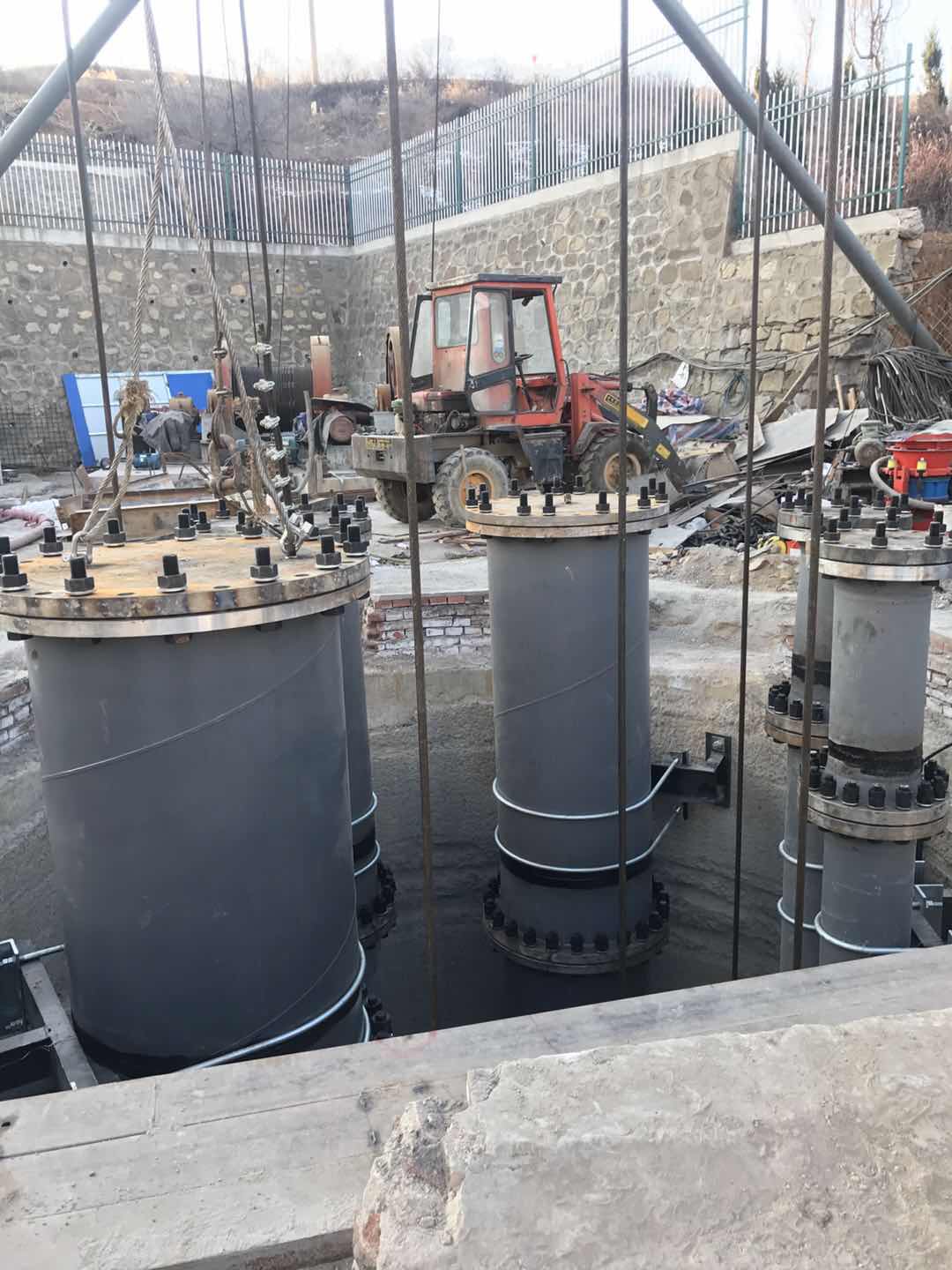 我公司2017年承担并完成的晋煤集团寺河矿上庄风井场地联合管道井工程位于该矿上庄风井场地内,设计净径为Φ4m,井筒深度为231.5m,采用反井钻机掘进,一次扩孔Φ4.2m成井,表土段采用砼支护,厚度500mm,基岩段采用锚网喷支护,喷射厚度10cm,喷射混凝土强度c20,建成后内部安装三趟瓦斯抽放管路和两趟应急排水管路,瓦斯抽放管路的直径分别为:Φ1020mm、Φ720mm、Φ820mm;应急排水管路直径Φ325mm,所有管路均采用Q325A螺旋焊管。